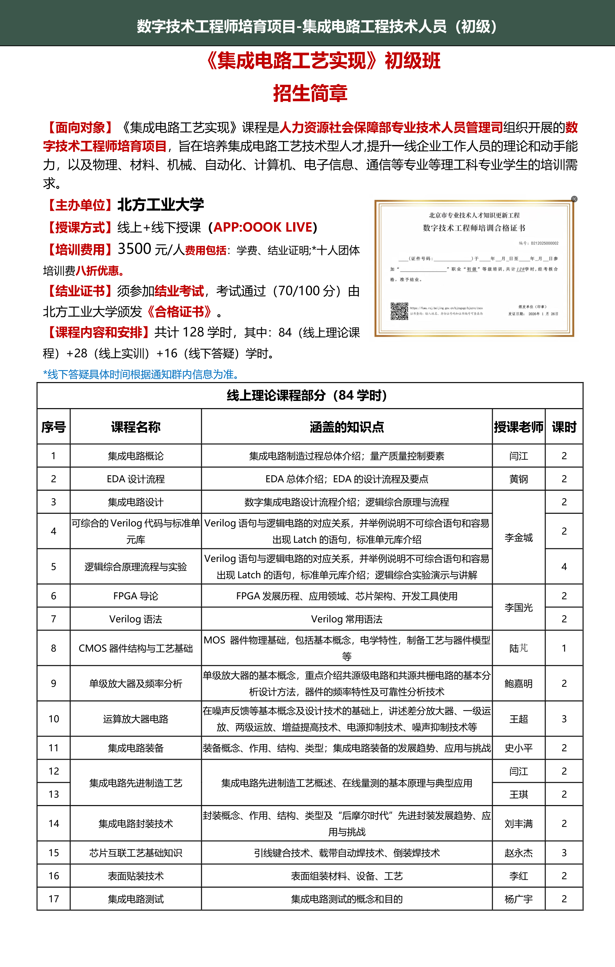 《集成电路工艺实现》初级班招生简章